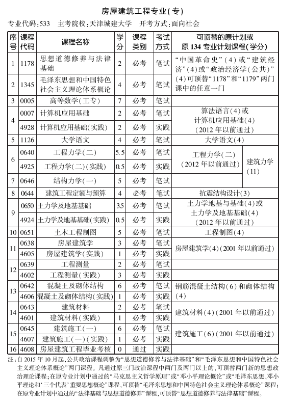 2019年天津自考房屋建筑工程专业专科考试计划已公布,请考生查看。