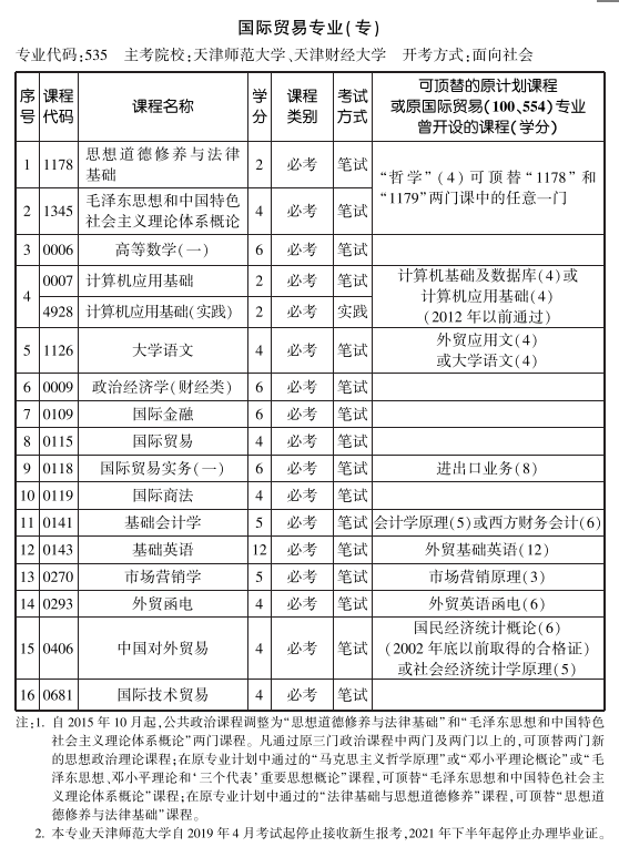 2019年天津自考国际贸易专业专科考试计划已公布,请考生查看。
