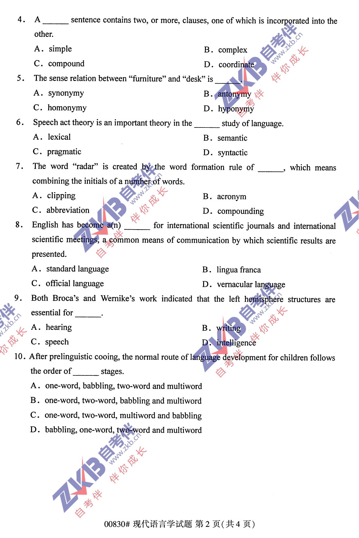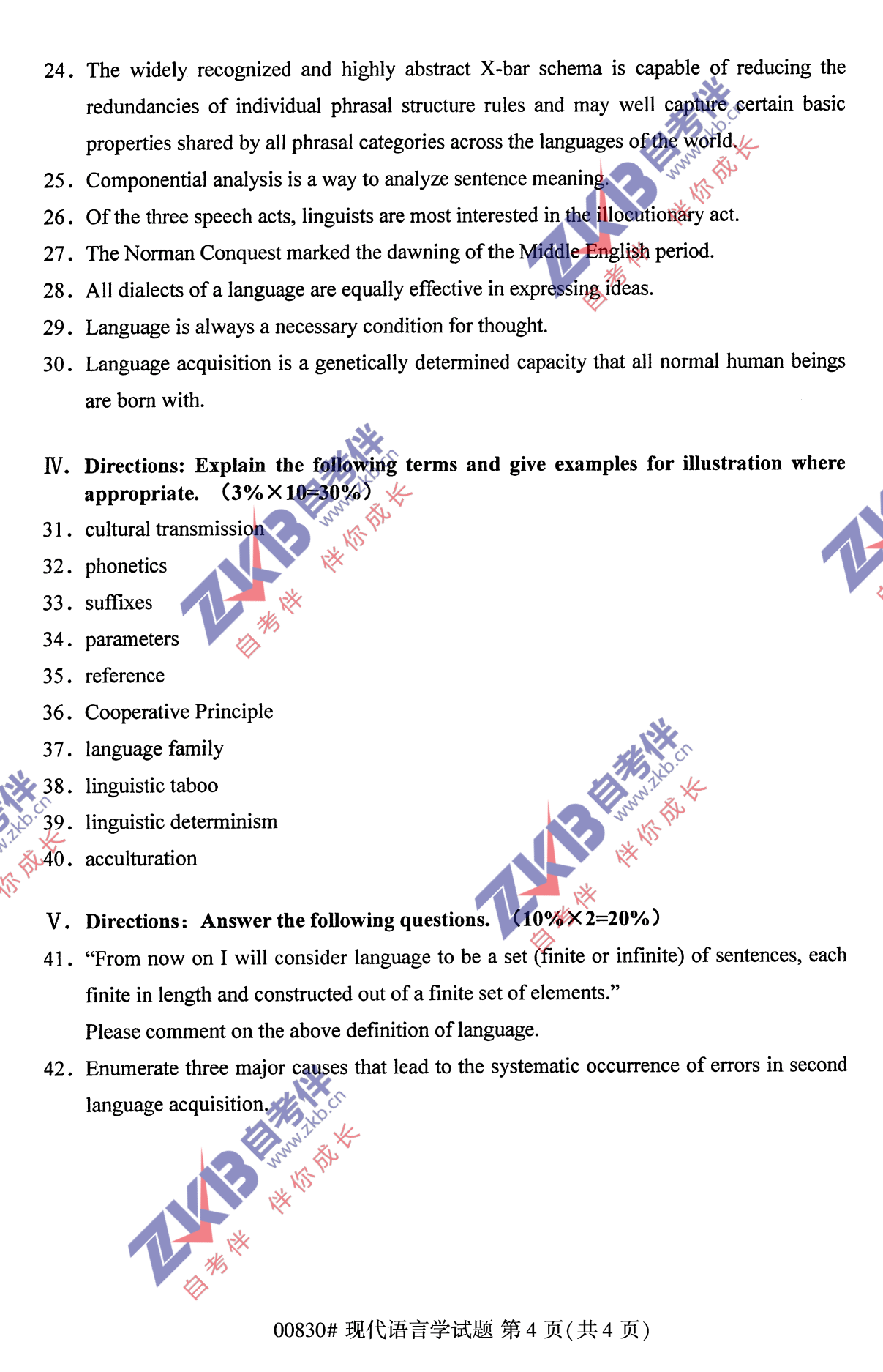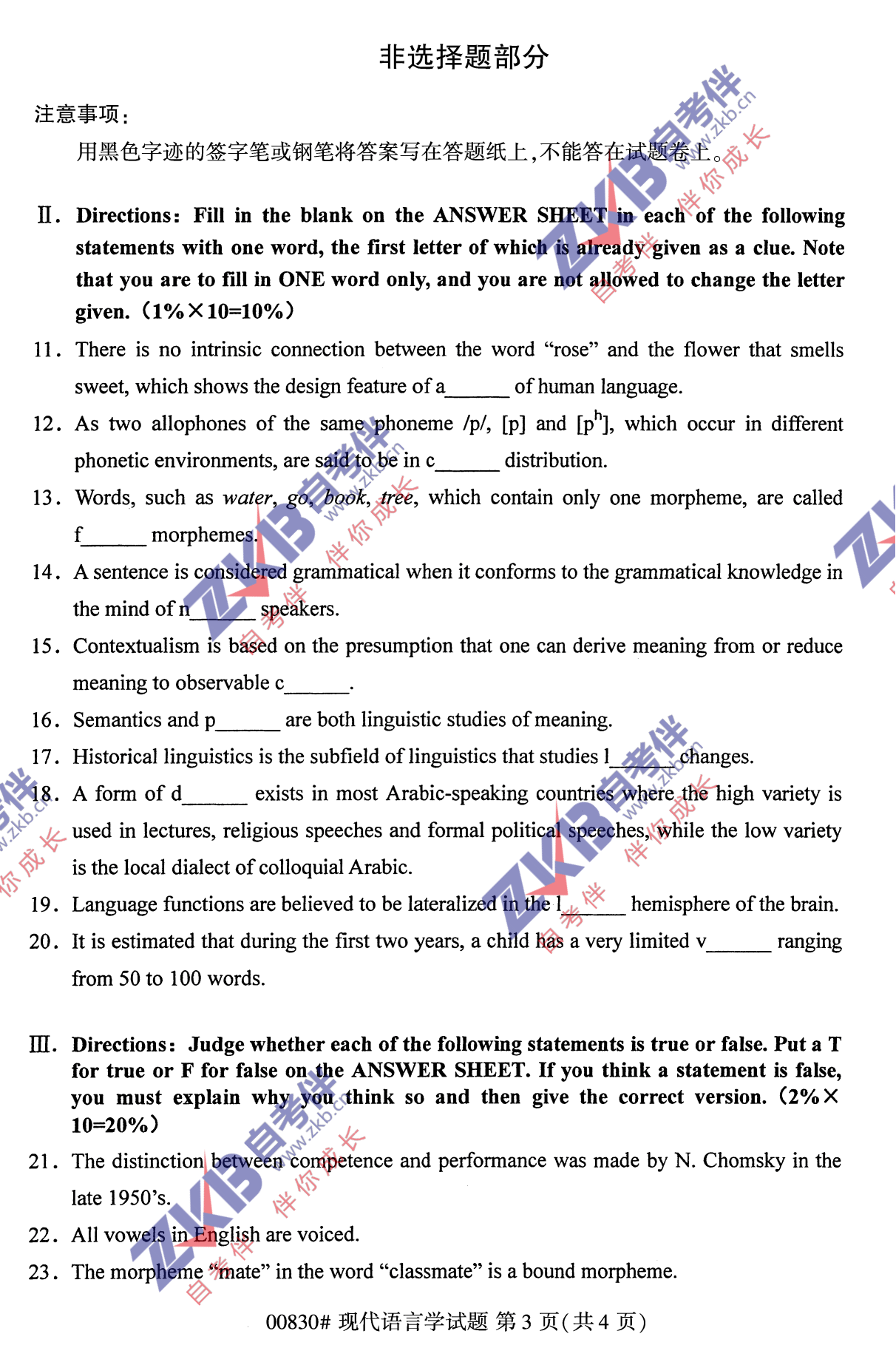 【导读】黑龙江自考网给大家整理了2021年10月黑龙江自考00830现代语言学试卷,希望能给你们带来一些帮助,快来黑龙江自考网看看吧!