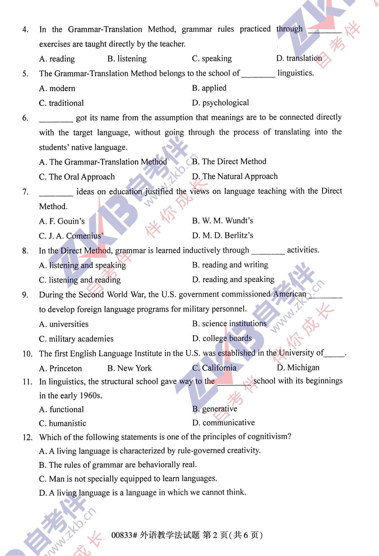 【导读】黑龙江自考网给大家整理了2021年10月黑龙江自考00833外语教学法试卷,希望能给你们带来一些帮助,快来黑龙江自考网看看吧!